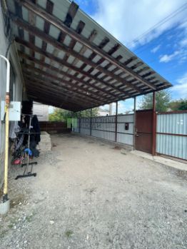 Дом построен из блоков, утеплен пенопластом 5см и оштукатурен. Большой капитальный навес со стороны крыльца.
