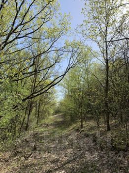 Произведено мульчирование леса под дорогу от твёрдой дороги с хутора до холма где будет расположено хозяйство. Вдоль дороги, через лес планировались домики отдыха (глэмпинг).