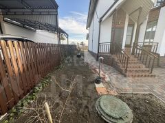 Территория дома выложена брусчаткой, есть парковочное место.