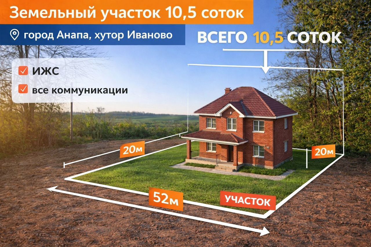 У мeня eсть отличный вариант — 10,5 соток ИЖС в хуторе Иванов (г. Анапа) с удобным подъездом и всеми коммуникациями рядом. Участок ровный, ухоженный, правильной формы
