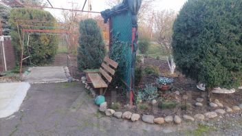 На территории участка есть ухоженный сад с зелеными насаждениями и теплицы для выращивания овощей. Огород в балку реки. Также имеется небольшой пруд. Во дворе летняя кухня с мебелью и техникой. Гараж. Сараи из кирпича с подвалом. Хоз. постройки. Двор асфальтированный и закрыт навесом что в летнее время спасает от жары.