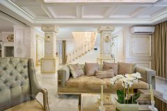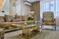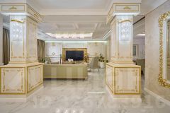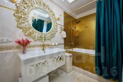 - Качественная отделка: В 2022 году выполнен дорогой ремонт с элементами мрамора и позолоты. Стены отделаны венецианской штукатуркой, многоуровневый потолок.