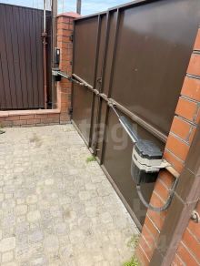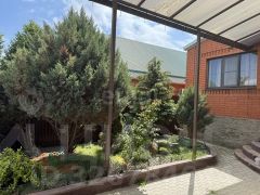 На благоустроенной территории расположен внутренний гараж, навес для дополнительного автомобиля и ухоженный зеленый двор.