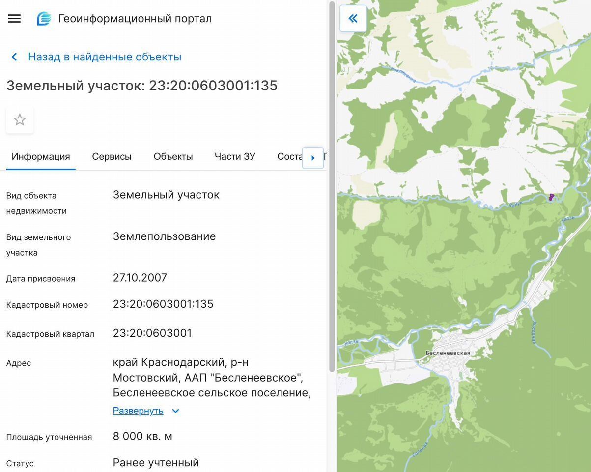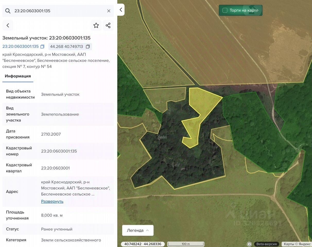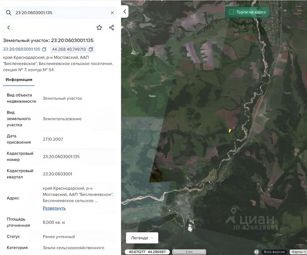 Земельный участок сельхозназначения 23:20:0603001:135.