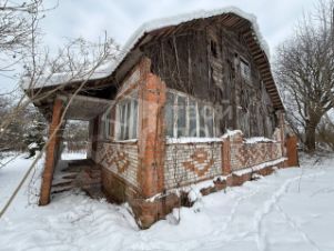 Дом из бруса, облицован кирпичом, требует ремонта.