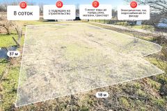 Земельный участок правильной формы площадью 8 соток предоставляет широкие возможности для благоустройства, организации зоны с беседкой и мангалом, детской площадки или небольшого сада.