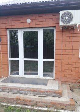 Натяжные потолки во всем доме, в том числе и на кухне, (на фото видно, что на кухне нет натяжного потолка, газ завели в дом, натяжной потолок натянули). На кухне имеются двери - выход можно организовать на террасу.
