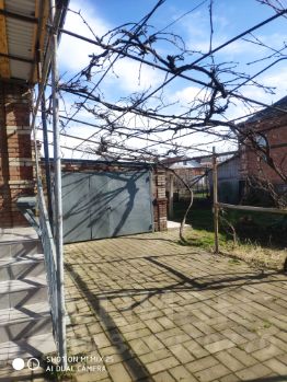 Дом полностью кирпичный, газифицированный, чистый, окна пластиковые, на окнах металлические решетки, в прошлом году сделан ремонт: заменили трубы отопления и радиаторы, перекрыта крыша на доме и гараже, шифер заменили на профнастил, переклеены обои, сделаны новые потолки из гипсокартона, на полу - новый ламинат, установили новые межкомнатные и входные двери, в ванной и на кухне заменили кафель и сантехнику, крыльцо обложили плиткой, в подвале забита труба для воды, установлен новый насос. Отопление центральное газовое, в доме установлена сплит-система, благодаря чему зимой тепло, а летом прохладно, во дворе капитальный кирпичный гараж со смотровой ямой, двор выложен плиткой, вокруг дома и вдоль забора залита новая бетонная отмостка, на участке есть кирпичный курятник, колодец, виноградник, плодовые деревья. В дом проведен интернет. Участок 6 соток. Забор металлический. Улица асфальтирована, рядом Пятёрочка, Магнит, Валдберис, горгаз, электросети, школа, аптека. До рынка, парка, железнодорожного вокзала, автостанции - 20 минут пешком.