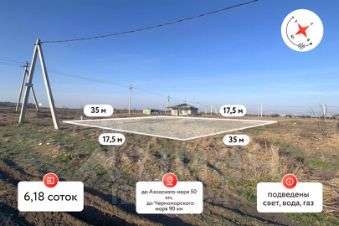 Земельный участок площадью 6,18 соток с фасадом 17,5 метров, подходит под Семейную ипотеку.