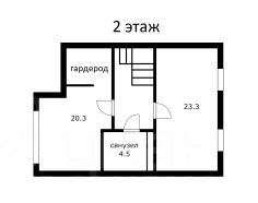 На втором этаже - спальня с гардеробной комнатой. Комната свободной планировки 23м2, если нужно можно сделать две комнаты, так как два окна.