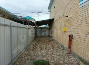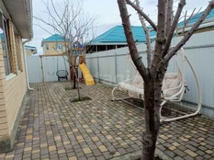 С одной стороны дома сделан навес, вокруг всего дома выложена тротуарная плитка.