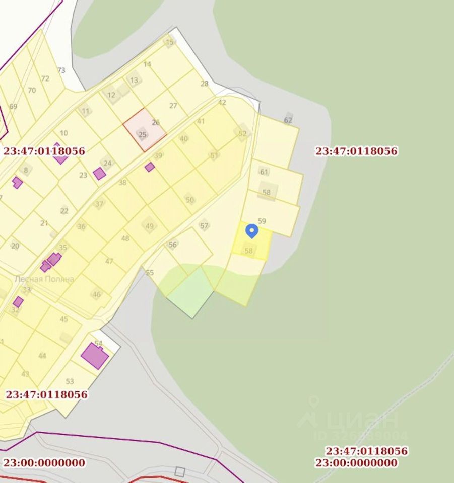 Категория земель: земли сельскохозяйственного назначения, с видом разрешенного использования для ведения садоводства и огородничества, расположенного по адресу: Краснодарский край, г. Новороссийск, район лысой горы, СТ "Лесная поляна", участок 59.