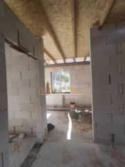 Дом построен из газоблока толщиной 250 мм. Общая площадь дома составляет 85 м, он расположен на просторном участке в 10 соток с фасадом 28 метров. На первом этаже расположена просторная кухня площадью 18 м2, жилая комната и санузел. Второй этаж выполнен со свободной планировкой - Вы сможете организовать пространство по своему вкусу. Коммуникации: подведено трёхфазное электричество, вода привозная, канализация - септик. Газ нужно подключить: магистраль находится всего в 30 метрах от дома. Звоните, чтобы узнать больше деталей и записаться на просмотр в удобное для Вас время!