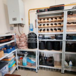 Под домом находится просторный подвал площадью 3х6 м с отдельным входом с улицы. Здесь оборудованы три яруса стеллажей для хранения, подведена холодная вода, а также установлена принудительная вытяжка, что делает его идеальным местом для виноделия или организации мастерской.