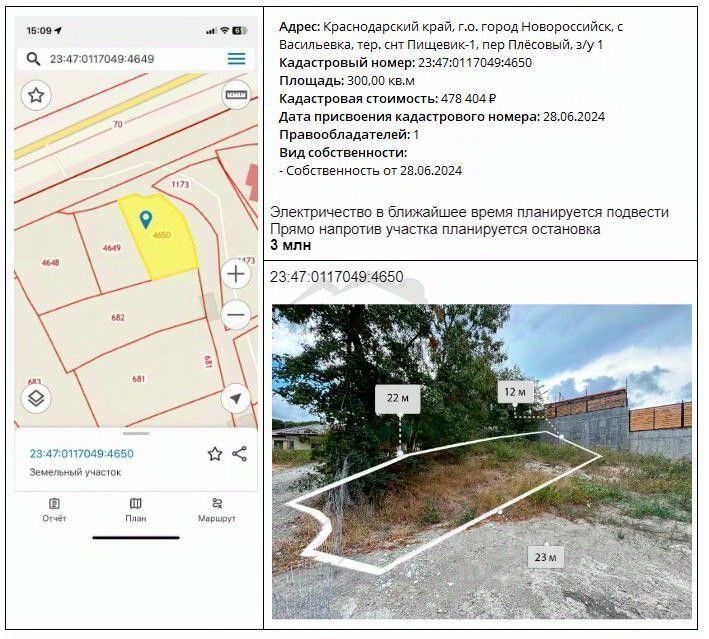 Арт. 82681403. Продам земельный участок в с. Васильевка 3 сотки. Электричество планируется подвести в ближайшее врея. Напротив участка планируют установить остановку обшественного транспорта. Рядом проходит трасса на Абрау Дюрсо. До Абрау Дюрсо 6 км. до моря 7 км. до Борисовки 3 км. Есть возможность расширить границы участка. А наши застройщики помогут с проэктом дома и строительством.