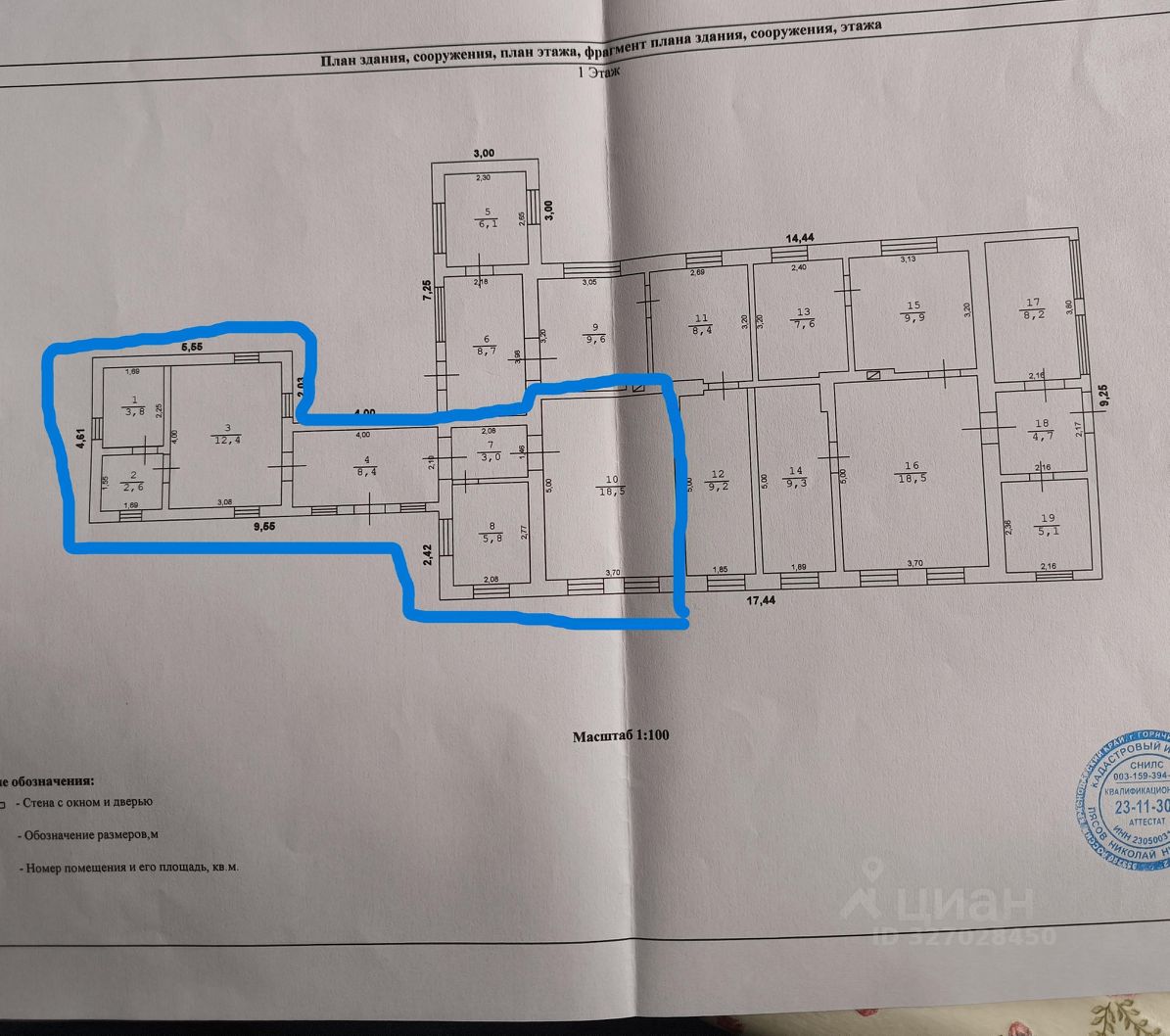 Сам дом 160 кв.м., но мы продаем часть 54, 5 кв.м. которая выделена на планировке синим цветом. Земельный участок общий 11 соток, у нас конкретно 3 сотки. Рядом несколько санаториев: Звездный, Горячий Ключ и др. Документы готовы, нотариальная сделка.