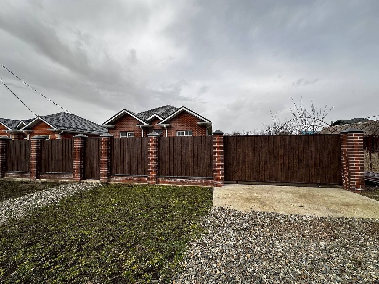 Установлены современные откатные ворота и забор по всему периметру.
