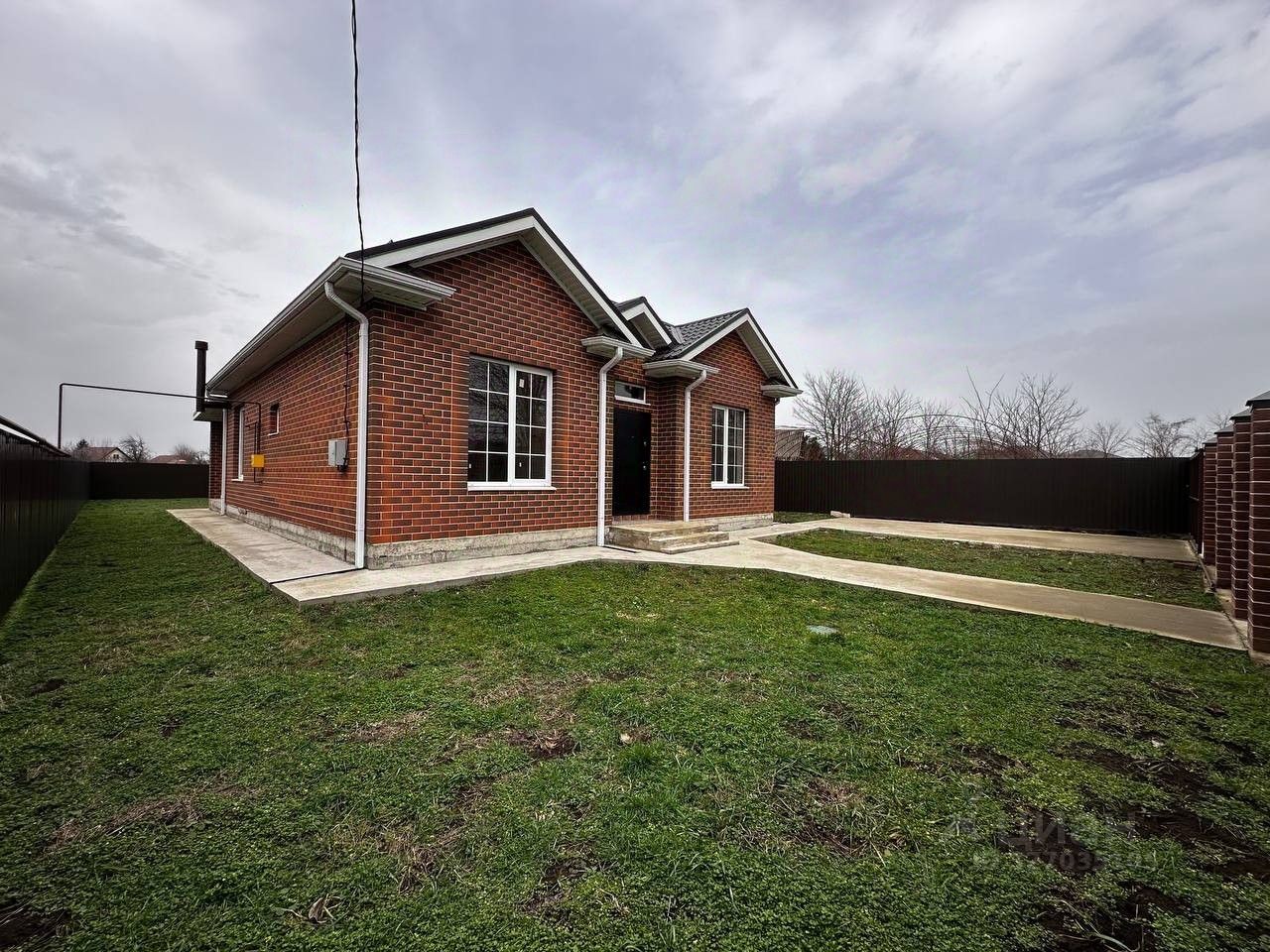 Двор и отмостка уже забетонированы — никакой грязи.