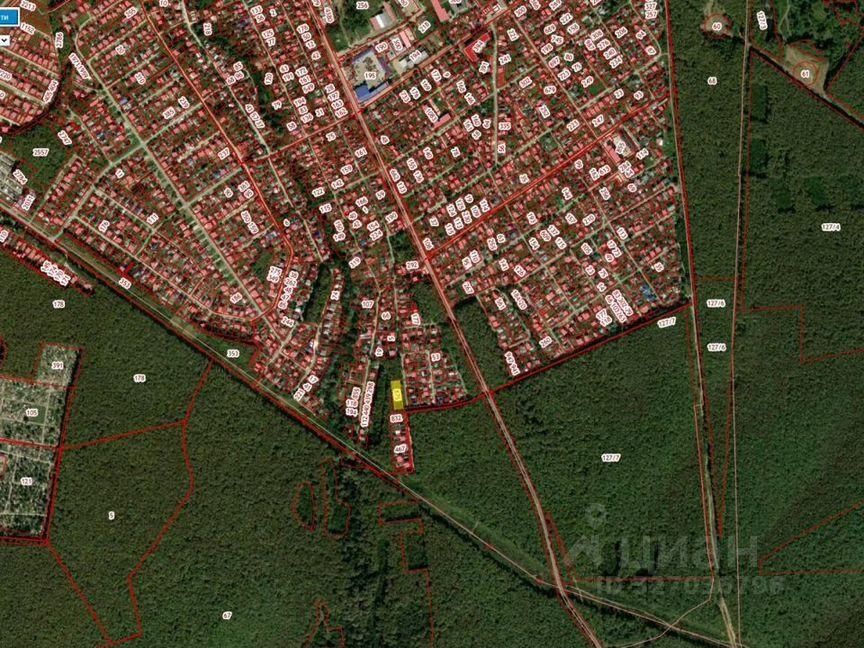 - Общая площадь участка 34 сотки. 20 соток Ижс (фасад 80 метров) в собственности +14 соток по периметру основного участка в долгосрочной аренде на 49 лет (расположение примыкающих участков видно на схеме, выделено красными кругами). На основном участке расположен дом из сруба площадью 95м2.