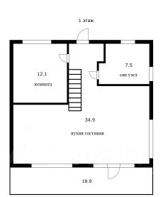 на 1 этаже: большая кухня-гостиная с панорамным освещением, уютная спальня и современный санузел.
