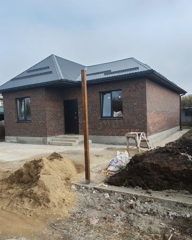 Фундамент дома ленточный в глубину 1,2 метра. Стены выполнены из кирпича. Кровля металлочерепица с утеплением минватой 10см. Все в доме сделано, для вашего комфорта и будущей экономии на коммунальных платежах, применены самые современные технологии строительства.