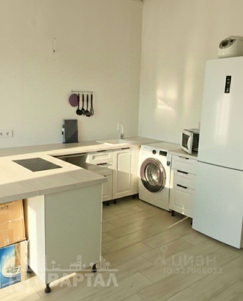 Остаётся мебель: кухонная зона-островок с керамической двухкомфорочной плитой, плательные шкафы (2 шт.). Остальное по договорённости.
