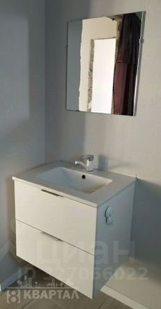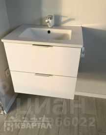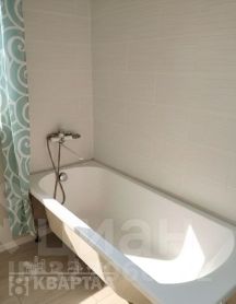 Ванная комната выполнена в дизайнерском стиле: установлена акриловая ванна длиной 170 см, керамическая плитка на стене в мокрой зоне, покраска стен в стиле лофт в остальной части. Раковина на подвесной тумбе, унитаз — всё новое.