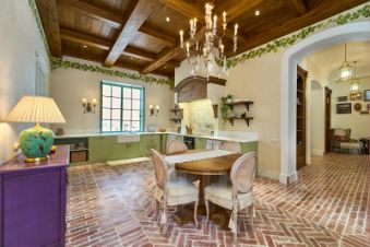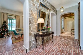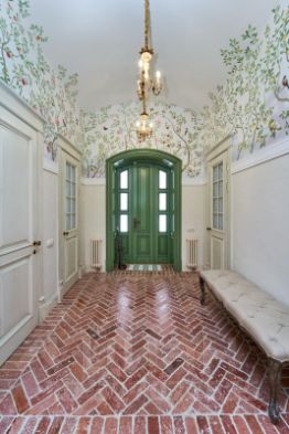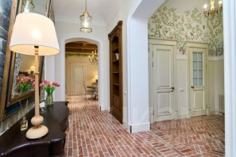 Пол в доме из кирпича, который отшлифован, покрыт лаком и отполирован через который проходит теплый пол.