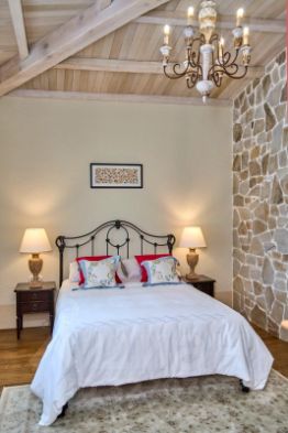 Гостиная с камином, Кухня столовая с выходом на трассу, две спальни со своим с/у, кабинет, гардероб, гостевой санузел, гараж, котельная, кладовая.