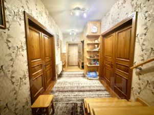 Гараж расположен в доме, 57 кв. м. с отоплением, на 2 машины. Подвал 59 кв. м. На 1 этаже прихожая, кухня-столовая, зал с камином. На 2 этаже (теплые полы) две спальни, балкон, гардеробная, санузел. Всего жилая часть 116 кв. м. Мебель и двери из массива ( дуб, бук, ясень).