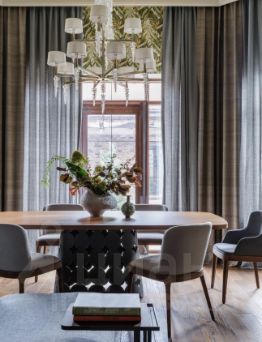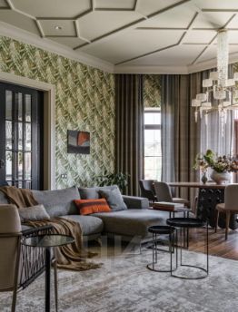 - основной дом в один этаж 238.7 м² (кухня с барной зоной, уютная гостиная с выходом на зеленую лужайку на которой расположились красивые композиции из хвойных и кустарников, просторный входной холл, 3 жилых комнаты (одна из которых mаstеr bеdrооm совмещенная с собственной ванной комнатой и просторной гардеробной, в основном доме 3 санузла, гардеробные, кладовые);
