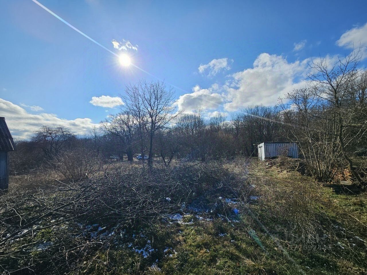 Участок имеет ровную форму, что упрощает проектирование и строительство. Электричество доступно на соседнем участке, что упрощает подключение. На территории уже есть вагончик для временного жилья или хранения и заложен фундамент, что делает участок готовым к строительству.