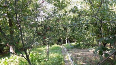 Участок площадью 6 соток, рельеф ровный, есть небольшой уклон. На участке растут плодовые деревья: яблоня, хурма, слива, персик, груша, инжир, орех (фундук) и виноградная лоза.