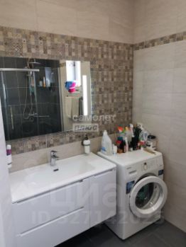 * санузел площадью 6 кв.м. с качественной сантехникой, зеркалом с подсветкой, унитазом и тумбочкой, натяжным потолком и стеклянной душевой кабиной;