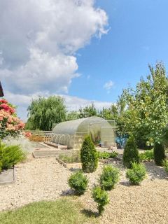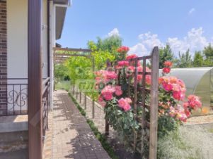 - На участке высажены плодовые деревья: черешня, абрикос, персик, груша, яблоки, инжир. Есть кустарники: смородина, крыжовник, малина, а также винный виноград — белый и красный.