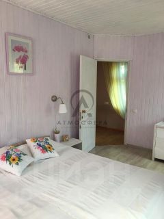Спальни на втором этаже отделаны натуральной вагонкой и выкрашены в нежные лавандовые оттенки.