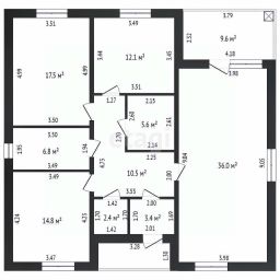 Планировка: три изолированные комнаты, просторная кухня-гостиная 36 кв. м, раздельный санузел и практичная гардеробная.