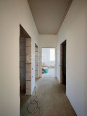 Выполнена предчистовая отделка с трехслойным оштукатуриванием стен, в коридоре, кухне и санузле уложена система теплого пола.