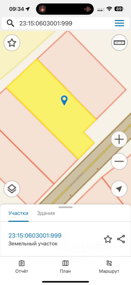 - Общая площадь участка 49 соток, фасад участка 45 м, глубина участка 112 м, кадастровый номер 23:15:0603001:999.