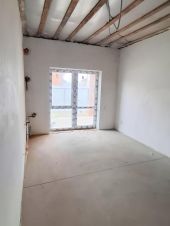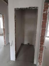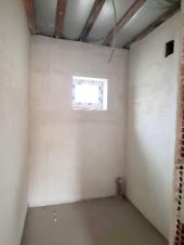 В доме сделаны водяные теплые полы, подключено отопление. Стены белые оштукатуренные, полы - стяжка, разводка электрики.