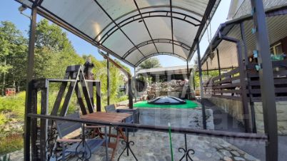 На территории есть всё: мини огород, мини пруд, стационарный мангал, помпейская печь, несколько беседок хозяйственные постройки, и подогреваемая купель. О красоте деревьев , кустарников и цветов моно долго говорить))) Очень ухоженный участок, выверен каждый сантиметр земли, дизайнерский ландшафт.