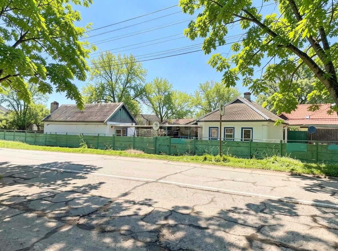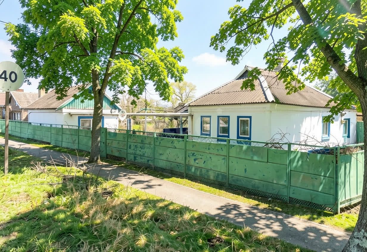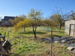 Участок угловой, размером 15 соток, с плодовыми деревьями и виноградом. Его важная характеристика — протяженный фасад в 47 метров по центральной улице, что позволяет при необходимости разделить территорию на два самостоятельных надела с перспективой нового строительства.