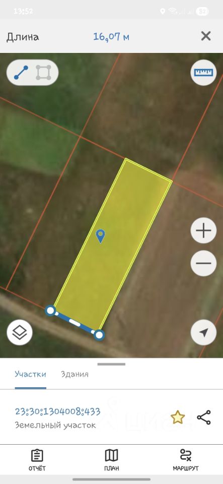 Ширина одного участка 15м