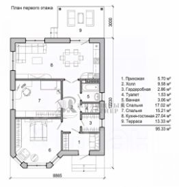 В доме 2 большие спальни (из них одна эркерная), большой санузел, , большая кухня-гостиная с выходом террасу.