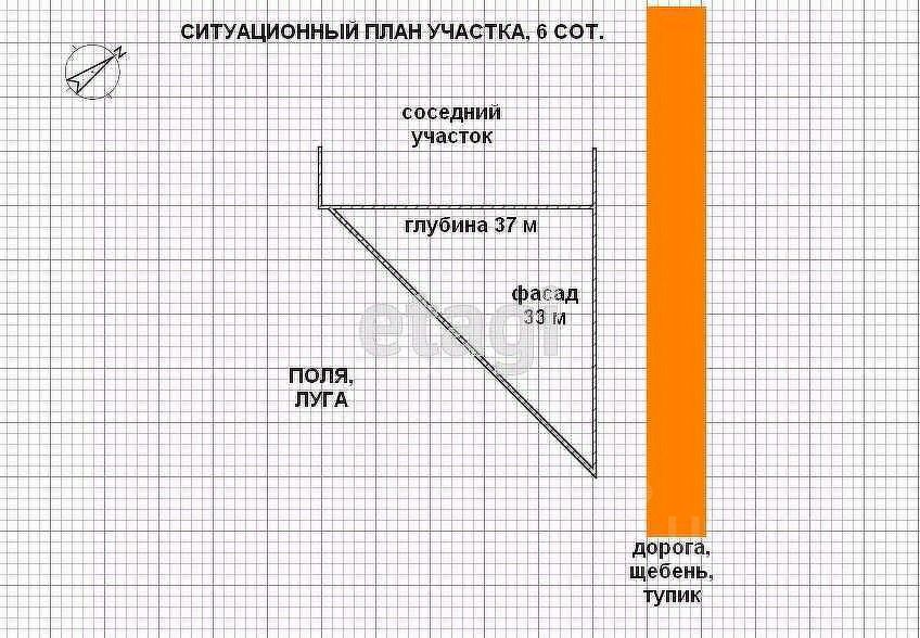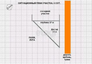 Участок треугольной формы, с небольшим уклоном, примыкает к дороге, отсыпанной щебнем. До асфальта 100 м. Не затапливается.