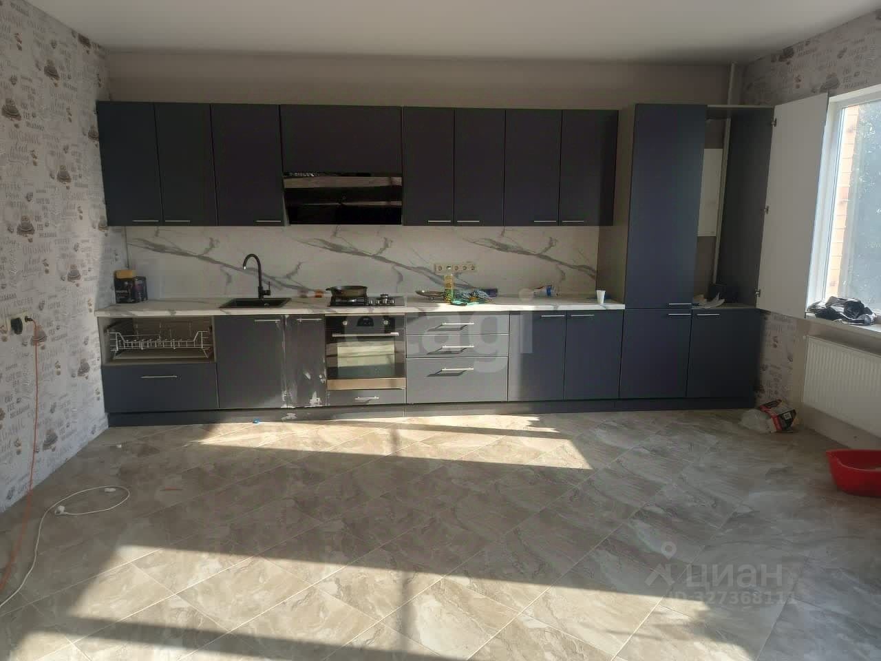 1 этаж большая прихожая (натяжные потолки, положена плитка), гостиная, кухня с ремонтом и мебелью (теплые полы), ванная (идет ремонт, материал весь есть)