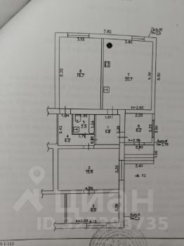 Площадь 74 кв.м., три жилых комнаты (одна проходная)+кухня+санузел.