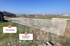 Площадь 10 соток по документам, а по факту больше. Широкий фасад 25 метр, глубина 40 метра, правильной прямоугольной формы.