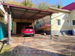 Ухоженная территория: тротуарная плитка, клумбы, парковка для авто,навес.