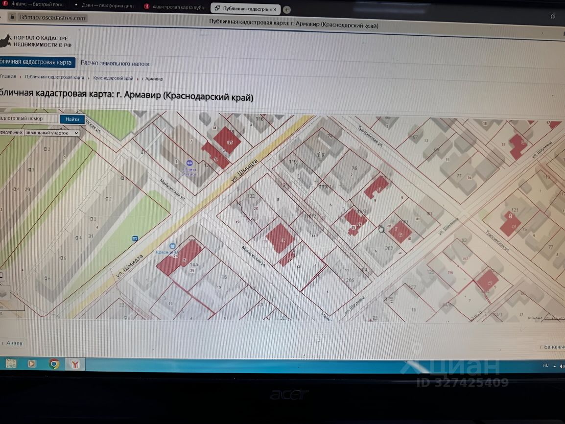 В продаже 3 (три) участка ( Шмидта N 121 -123-125) одним лотом, которые образуют мини квартал — подъезд с трех сторон.